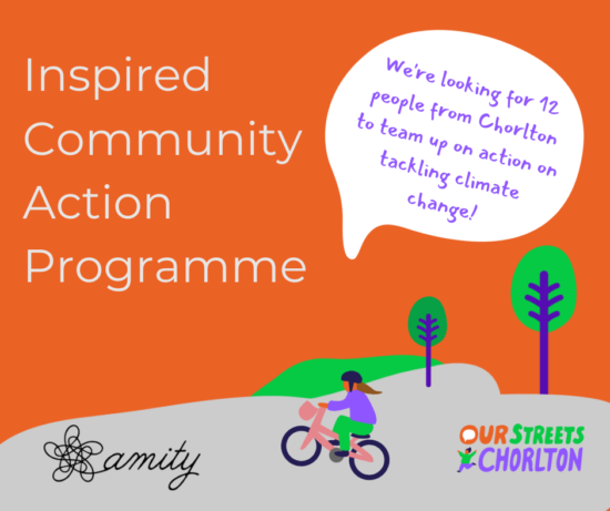 Do you want to join others to take climate action here in Chorlton? Then we have the perfect programme for you! Get in touch to be part of Our Inspired Community Action Programme with Amity!